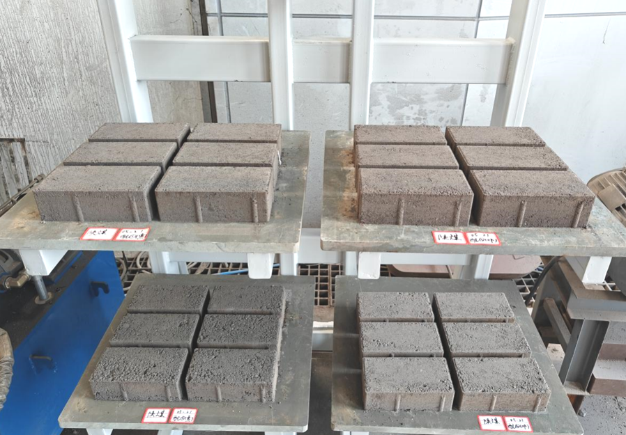 சோதனையின் போது, தொழில்நுட்பக் குழுவானது குவாங்காங் எரிக்கப்படாத செங்கல் இயந்திரத்தின் தொழில்நுட்ப நன்மைகளை முழுமையாகப் பயன்படுத்தியது. அவை அதிர்வு அதிர்வெண், அழுத்தத்தை உருவாக்குதல் மற்றும் எஃகு கசடுகளின் பண்புகளுக்காக குறிப்பாக குணப்படுத்தும் செயல்முறையை சரிசெய்தன. தொடர்ச்சியான சோதனைகளுக்குப் பிறகு, உகந்த கலவை வடிவமைப்பு இறுதி செய்யப்பட்டது: 40% எஃகு கசடு உள்ளடக்கம், துணை பொருட்கள் மற்றும் சேர்க்கைகளின் குறிப்பிட்ட விகிதங்களுடன் இணைக்கப்பட்டது. இது வெற்றிகரமாக கான்கிரீட் தொகுதிகள் வலிமை தேவைகளை பூர்த்தி செய்தது மற்றும் சிறந்த நீடித்த தன்மையை வெளிப்படுத்துகிறது, கட்டிடத் தொகுதி தரங்களுடன் முழுமையாக இணங்குகிறது.